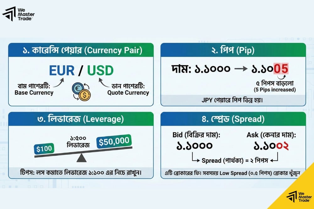 - বিষয়: পিপ, লট, কারেন্সি পেয়ার এবং লিভারেজ বুঝুন।