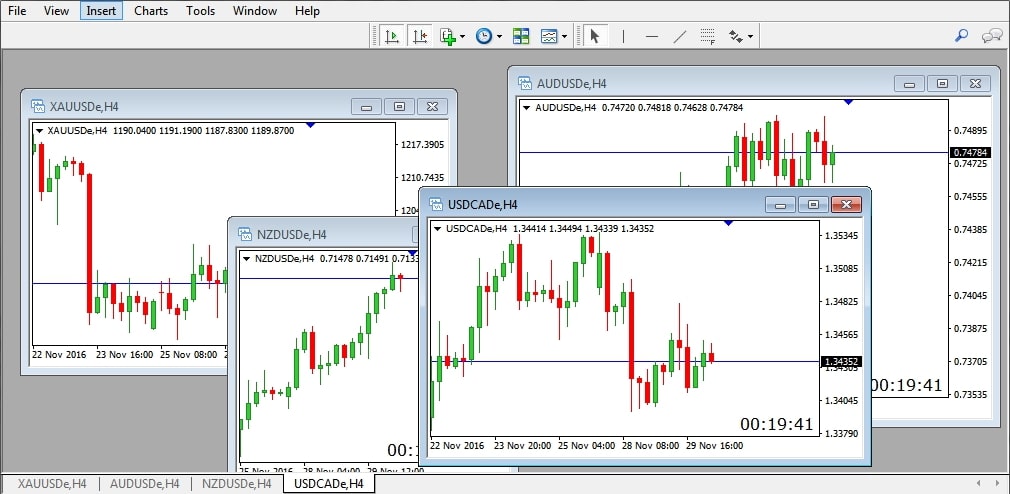 - MT4 will automatically divide the screen into 4 equal squares, helping you oversee the entire market.