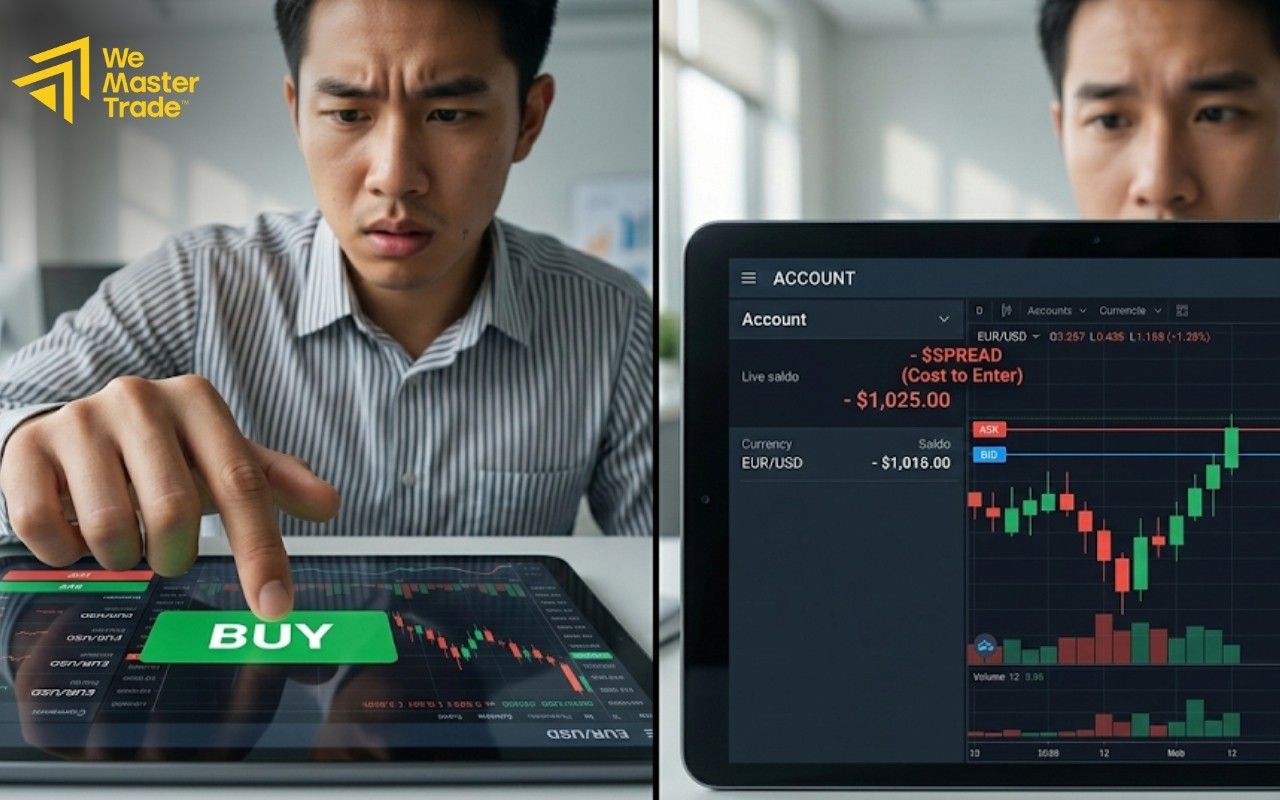 Pernah mengalami situasi ini? Kamu baru saja klik tombol “Buy”, tapi posisi langsung menunjukkan angka merah. Padahal harga belum bergerak sama sekali.