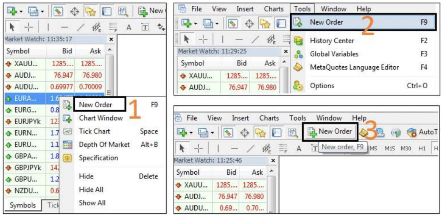 Before entering a trade, take a deep breath and clearly define your plan. To open the order panel, you have 3 ways:
