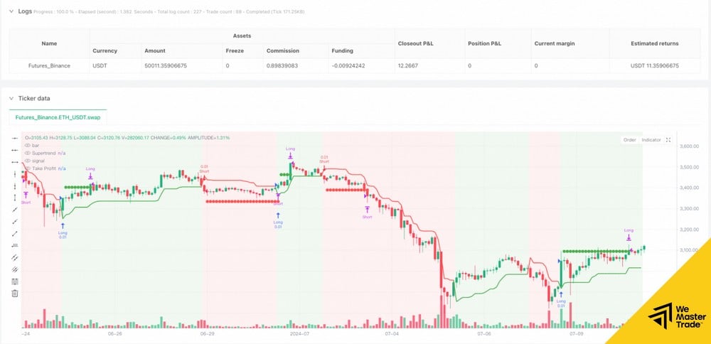 - How to trade: Buy when Supertrend turns Green + price is above the EMA 200 (to filter the long-term trend).