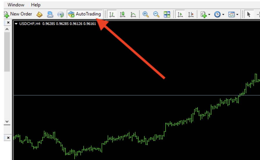 - On the toolbar, find the Auto Trading button and click it until it turns green (Play icon).